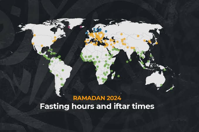Muslims living in the world’s southernmost countries, such as Chile or New Zealand, will fast for about 12 hours, while those living in northernmost countries, such as Iceland or Greenland, will have 17-plus hours fasts.